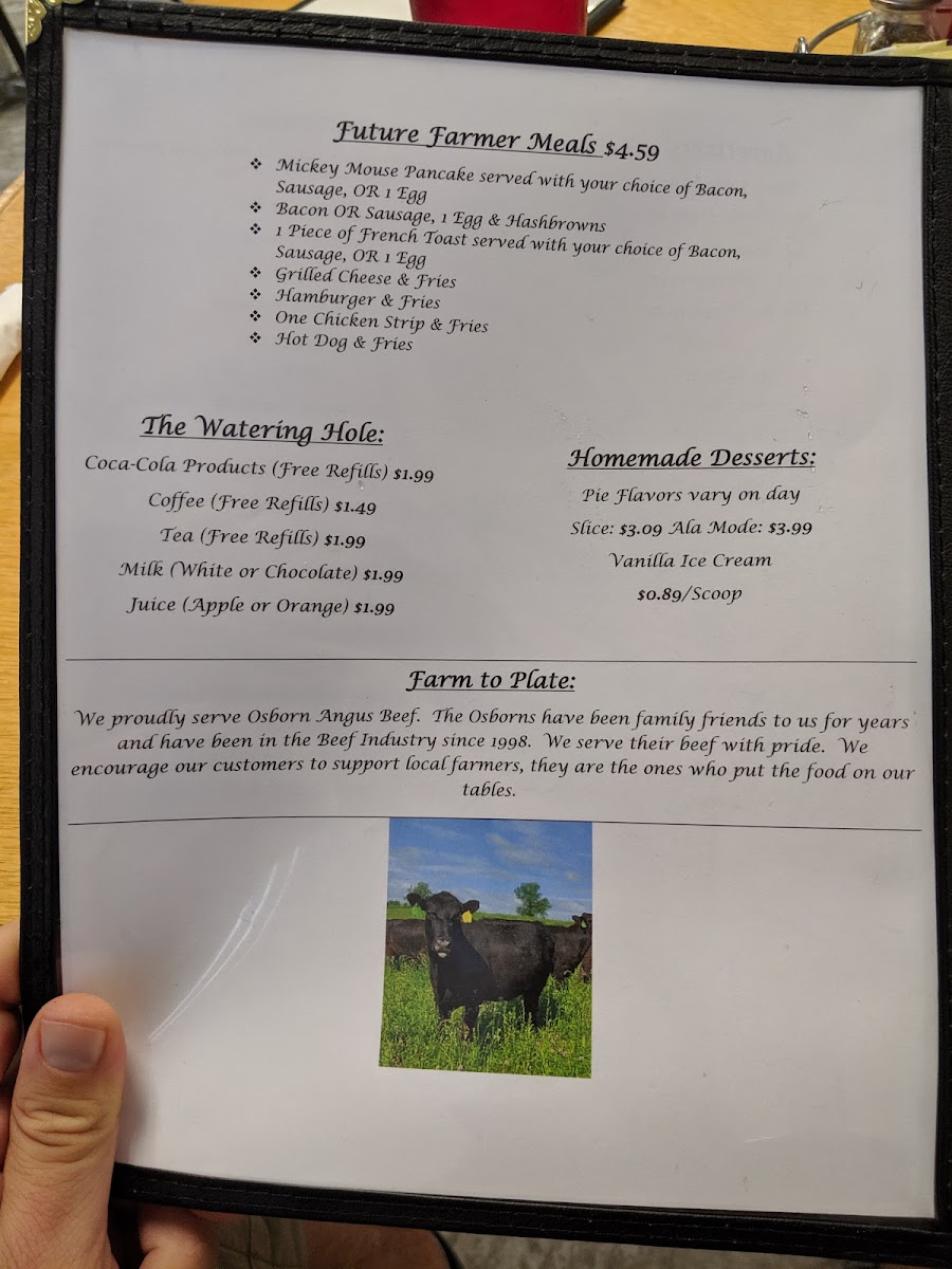 Welcome to The Pasture Cafe, an inviting culinary gem located at 508 S US Hwy 71 in Savannah, MO. This charming diner serves up a delightful breakfast menu that features delightful dishes such as the Chick, Hen, and Farm To Fork options, ensuring there's something for everyone to savor. The Future Farmer Meals offer a playful twist, catering to younger appetites with items like Mickey Mouse Pancakes and classic Grilled Cheese.